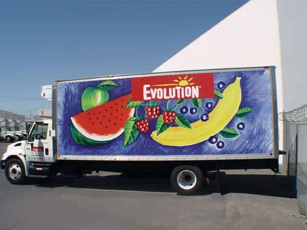Evolution Juices was looking for a way to complement their national advertising campaign. Platon helped them produce this unique full-panel truck display.